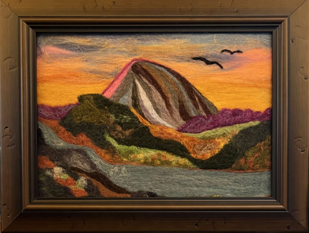 Through needle felting and wet felting, fiber becomes both textured paintings and three-dimensional sculptures — shaped slowly, layer by layer.
