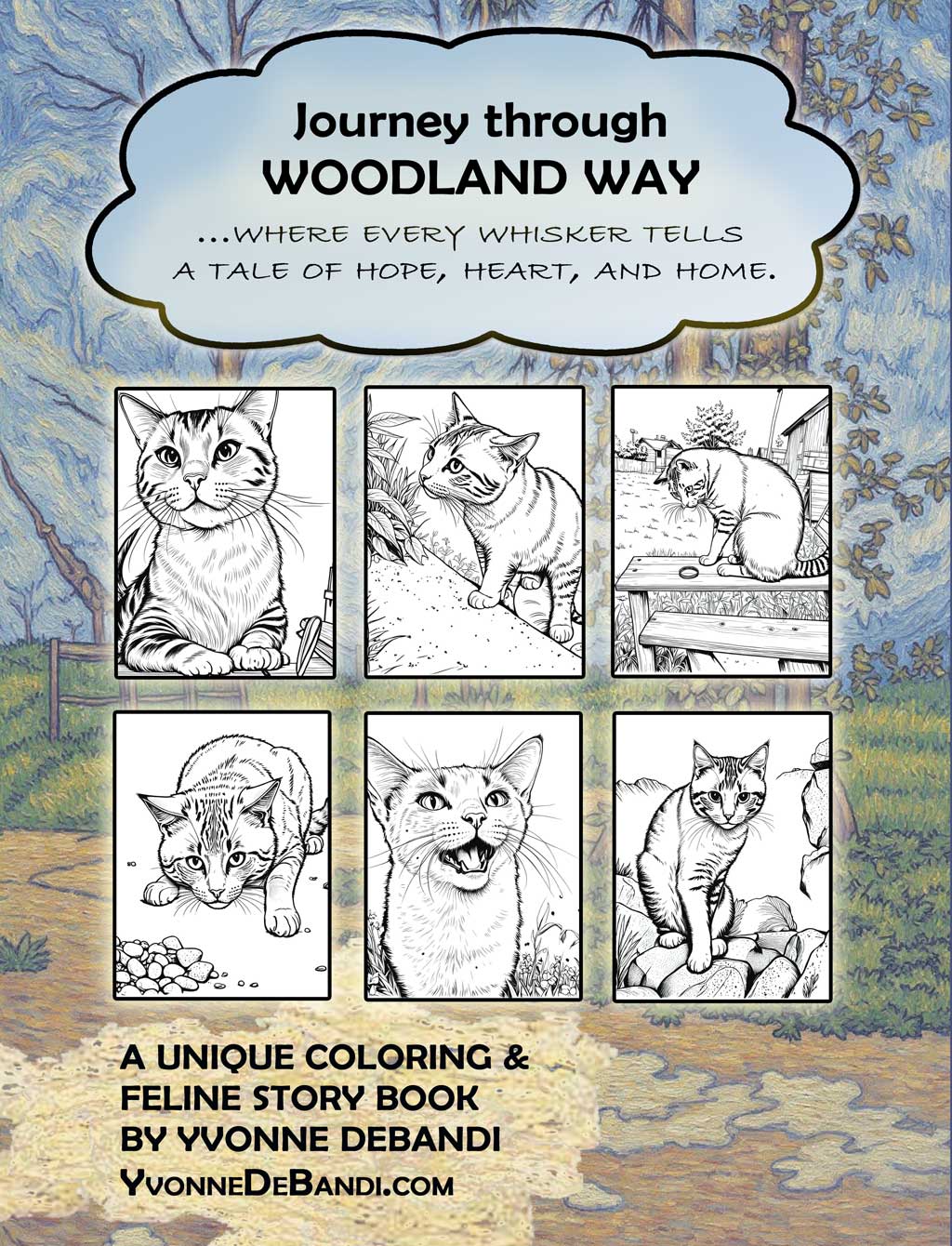 Journey through Woodland Way and meet the rescued cats … where every whisker tells a tale of hope, heart and home. It’s a charming coloring storybook filled with whiskered whimsy, cozy tales, and adorable illustrations to color.